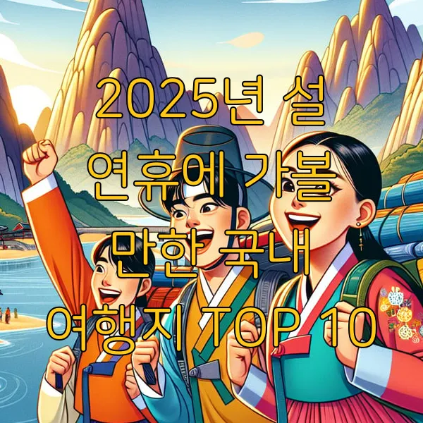 2025년 설 연휴가 다가옵니다! 1월 27일부터 2월 2일까지, 최대 9일간의 황금연휴를 맞이하여 특별한 여행을 계획해보는 건 어떨까요? 이번 포스트에서는 가족, 연인, 친구와 함께 떠나기 좋은 국내 여행지 TOP 10을 소개합니다. 자연의 아름다움, 문화적 체험, 그리고 맛있는 음식까지 모두 즐길 수 있는 다양한 여행지를 준비했습니다. 함께 살펴볼까요?